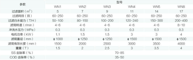 注:當(dāng)廢水濃度越高、網(wǎng)目越高,SS、COD 去除率越高??筛鶕?jù)用戶需求,定做處理量大的機(jī)型和不銹鋼材質(zhì)配件。